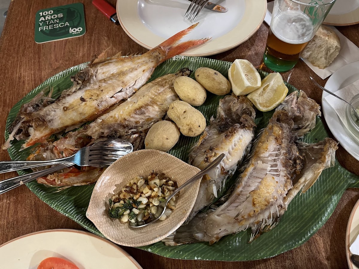 Had walked by a couple of times and the food they served looked very delicious. I decided to try out the restaurant. I asked for a table and got one right away and within minutes 2 waitors had asked if I wanted something to drink and brought the menu. I ordered garlicbread, sirloin steak with bearnaisesauce and a beer. I was pleasantly surprised. The garlicbread was delicious with fresh bread, butter and lots of garlic. And the sirloin steak was fried perfectly and tasted really good. The few vegetables and the fries were good as well. It is a little bit noisy, but thats to be expected in a narrow outdoor eating area. I will definitely dine at Restaurante La Puntilla Casa Menso again.